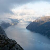 I became weak kneed when Kyle posted a photo of him or one of his missionary compatriots sitting on the top of Pulpit Rock with his feet hanging over the edge. Pulpit Rock rises almost 2000 feet above Lysefjord.
